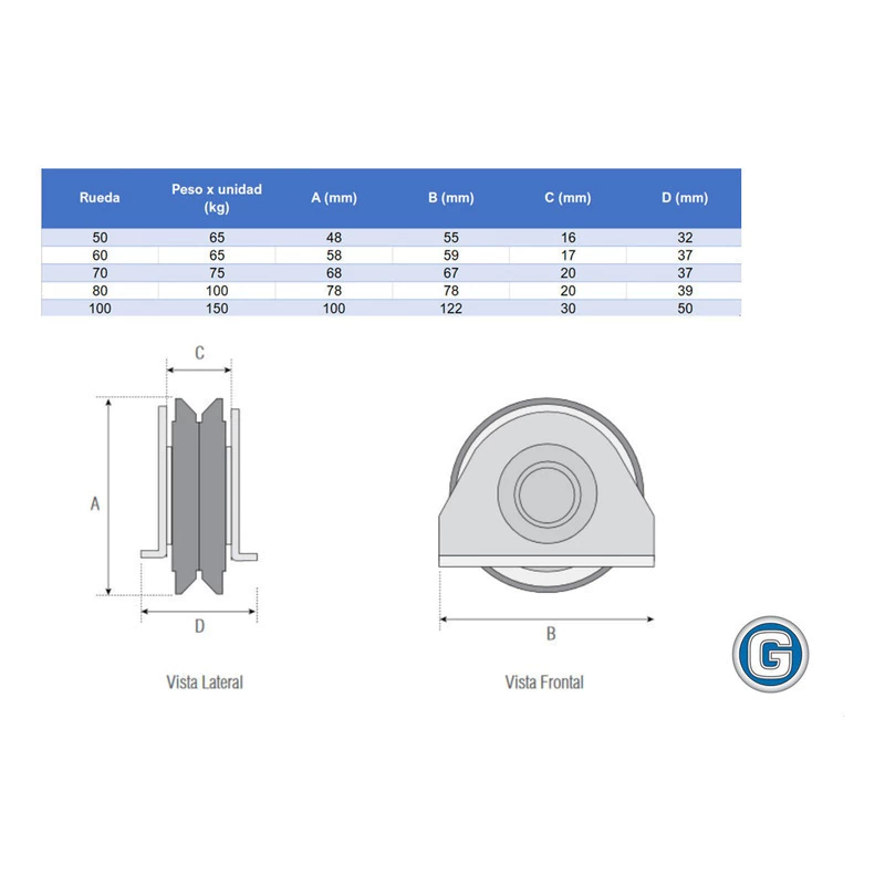 + RUEDA AL PISO PARA PORTONES CUYAS PLACAS LATERALES PERMITEN SOLDAR LA RUEDA ALINEADAMENTE AL PERFIL