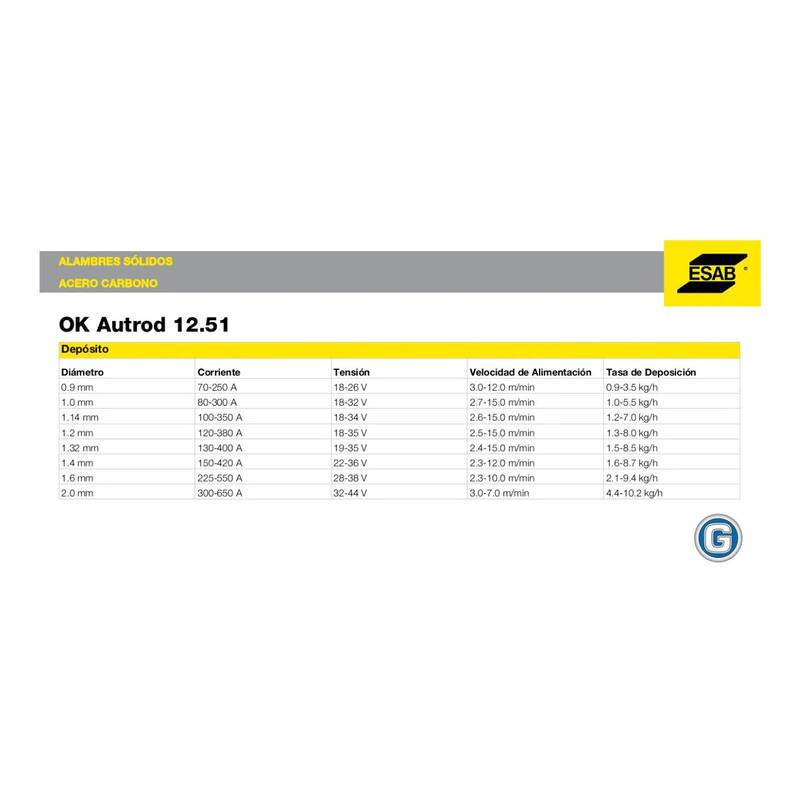 Se utiliza para soldadura por arco eléctrico con protección gaseosa para procesos MIG/MAG. Este producto posee excelentes propiedades mecánicas y es apto para aplicar sobre aceros al carbono o de baja aleación.