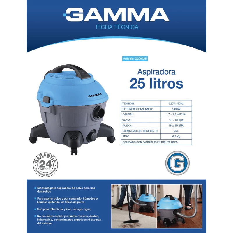 Aspiradora Gamma Polvo Liquido 25l 1400w Potente Sim Karcher