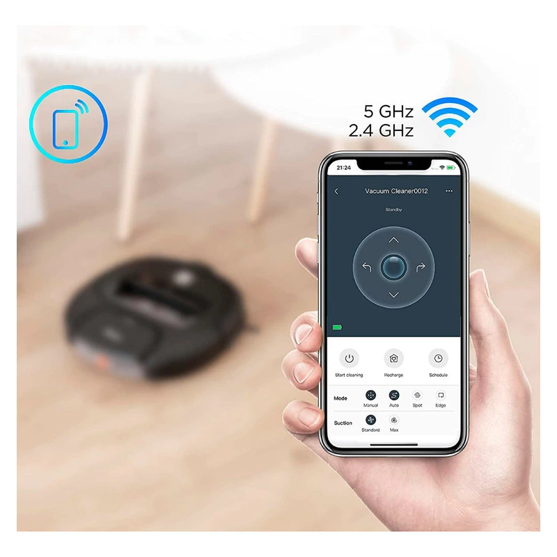 Batería de litio de 2600 mAh y equipado con mando a distancia para un control más fácil; El robot aspirador vuelve automáticamente a la base de carga de la estación de acoplamiento cuando la batería está casi descargada.