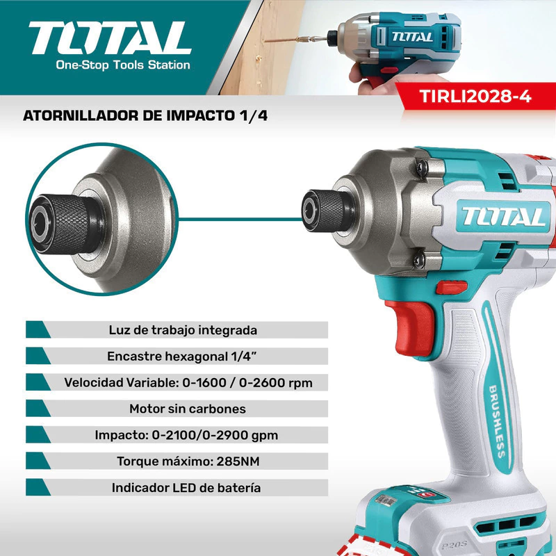 Atornillador Impacto Inalámbrico Total 2 Bat 1/4 20v 2600rpm