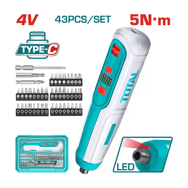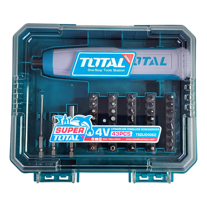 Atornillador Inalámbrico A Batería Kit 43pz Estuche Total 4v