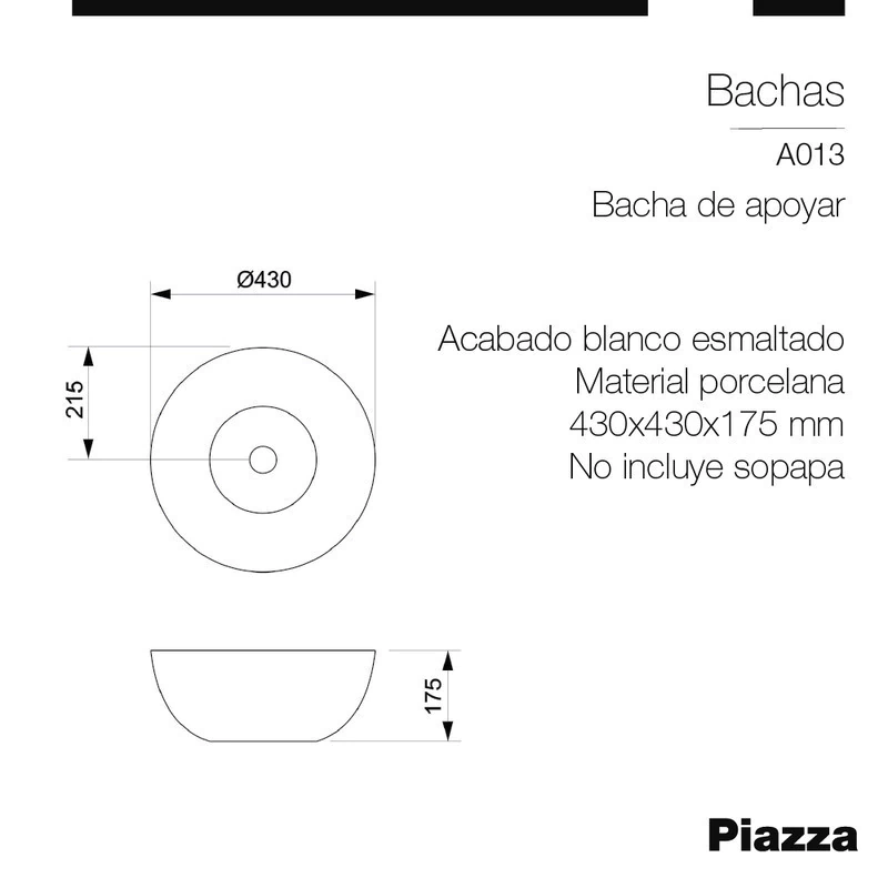 Bacha Baño Porcelana Apoyar Redonda Blanca Lavatorio Pileta