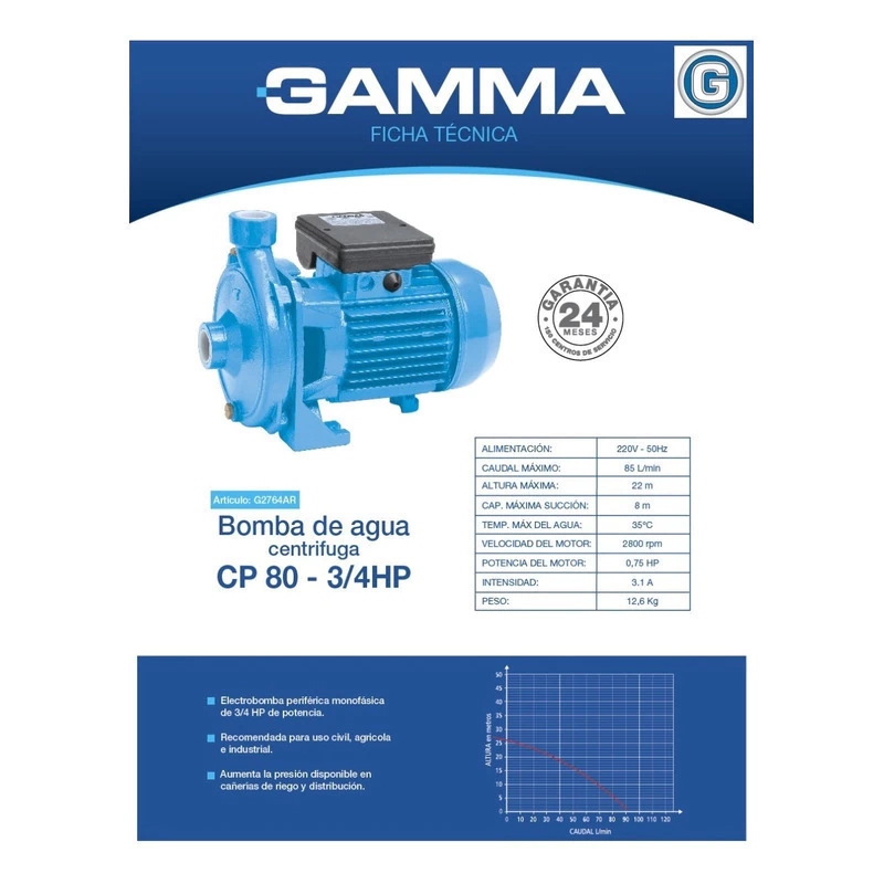 Electrobomba centrífuga monofásica de 3/4HP recomendada para uso doméstico.