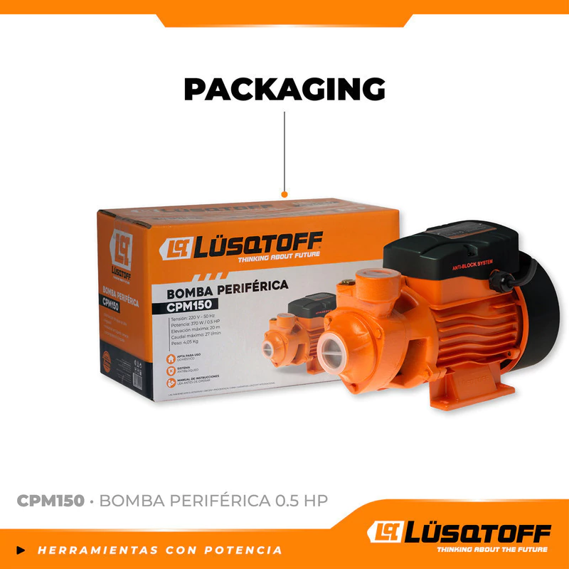 La bomba Lüsqtoff CPM150 genera mayor presión, lo que permite que los líquidos suban hasta una altura máxima de 8m.