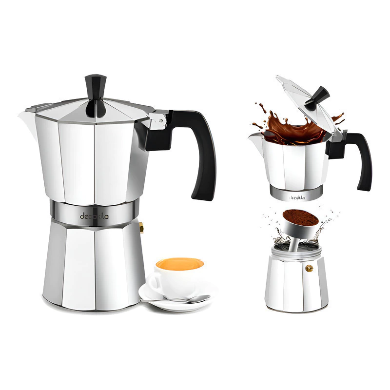 Cafetera Moka Decakila 9 Tazas 450 Ml Tipo Italiana Plateado