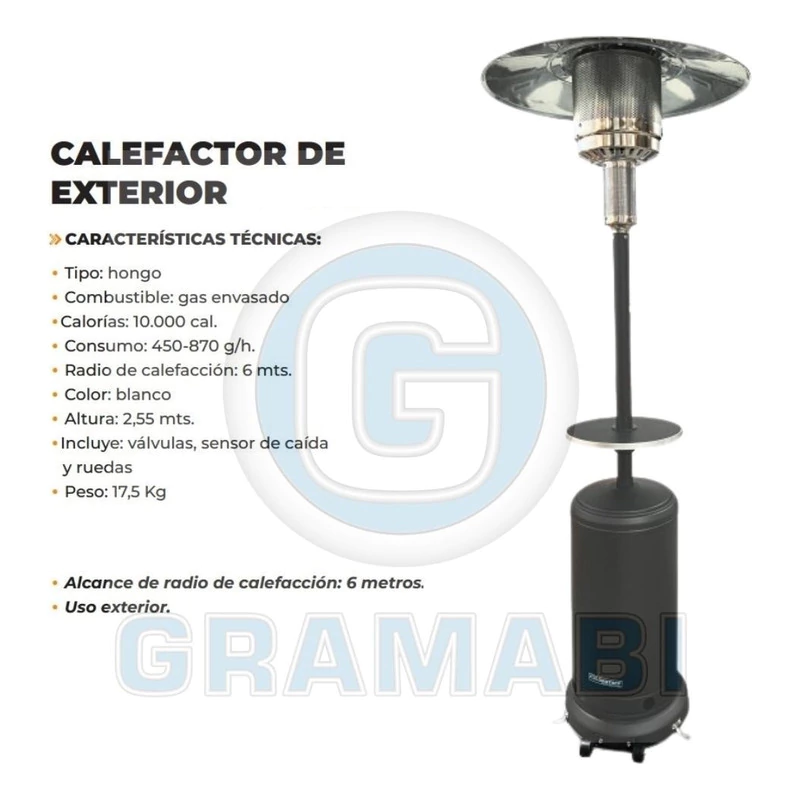 CALEFACTOR EXTERIOR HONGO CUERPO PINTADO CON PINTURA EPOXI COLOR NEGRO CON MESITA DE APOYO LÜSQTOFF MODELO JK-1008BN