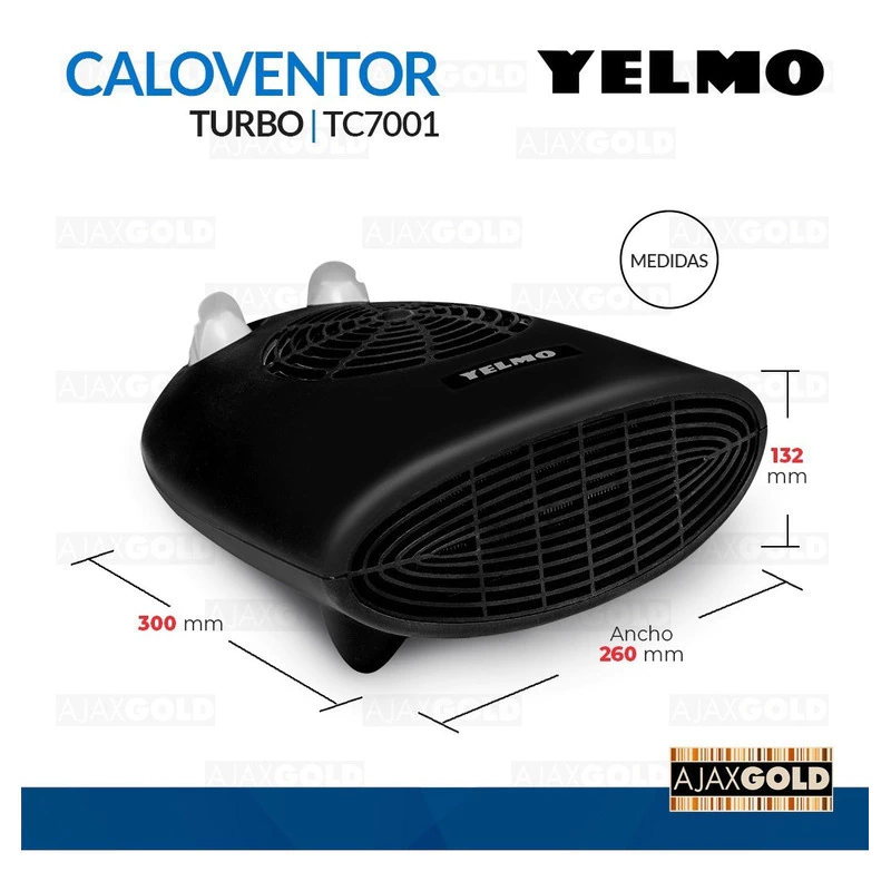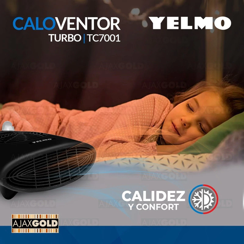 Caloventor Eléctrico Turbo Termostato 2000w Apto Baño Yelmo Color Negro