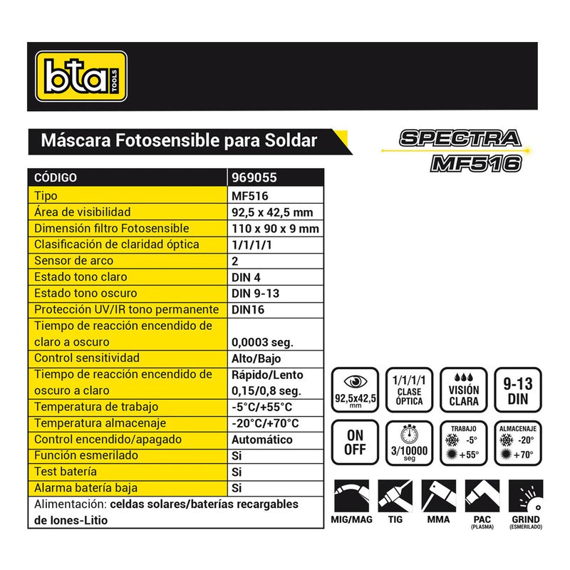 Máscara Fotosensible Para Soldar BTA SPECTRA MF516 969052