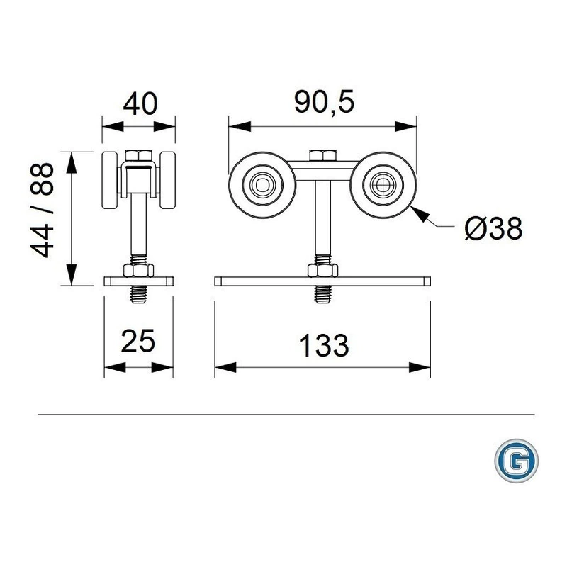 CARRO DE 4 RODAMIENTOS DE POLIAMIDA (NYLON) PLASTICAS PARA UTILIZAR EN RIEL No. 172
