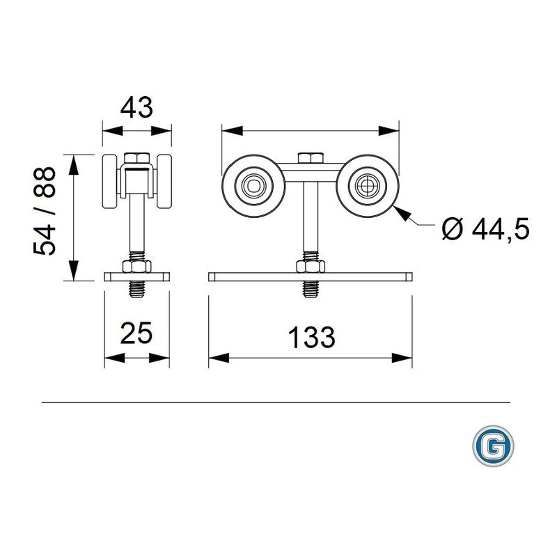 CARRO DE 4 RODAMIENTOS DE POLIAMIDA (NYLON) PLASTICAS PARA UTILIZAR EN RIEL No. 174