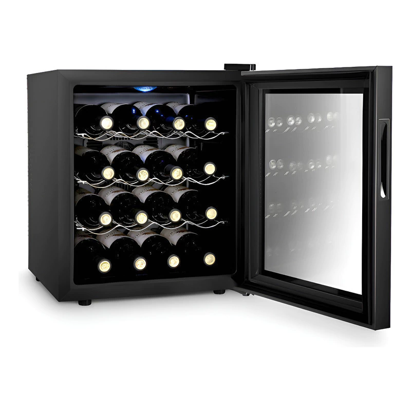 La capacidad de almacenamiento de 16 botellas, hace que esta cava sea ideal para tu hogar o espacios pequeños donde quieras crear una colección de bebidas a tu gusto.