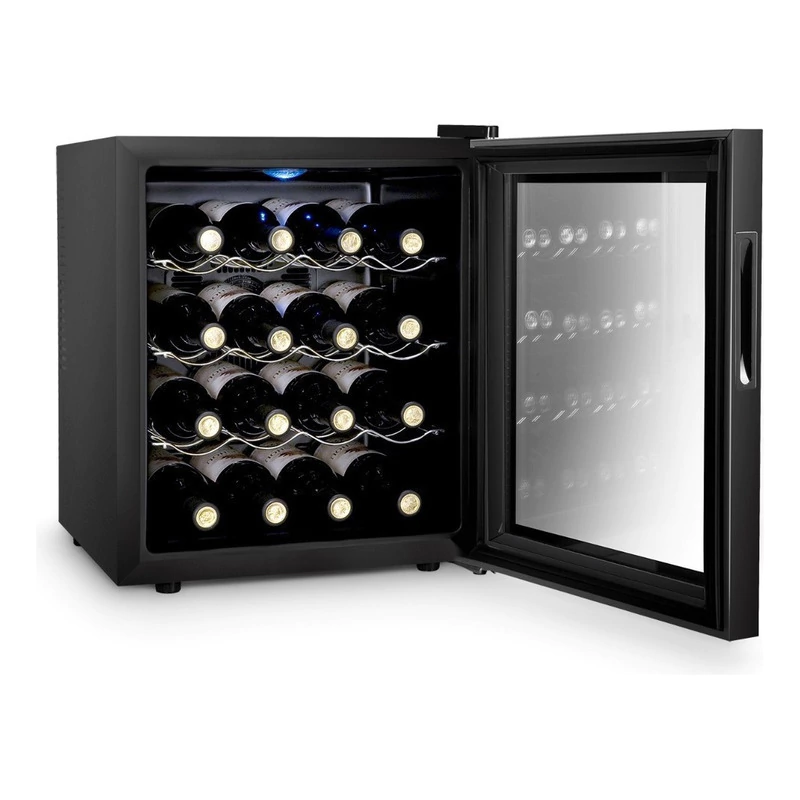La capacidad de almacenamiento de 16 botellas, hace que esta cava sea ideal para tu hogar o espacios pequeños donde quieras crear una colección de bebidas a tu gusto.