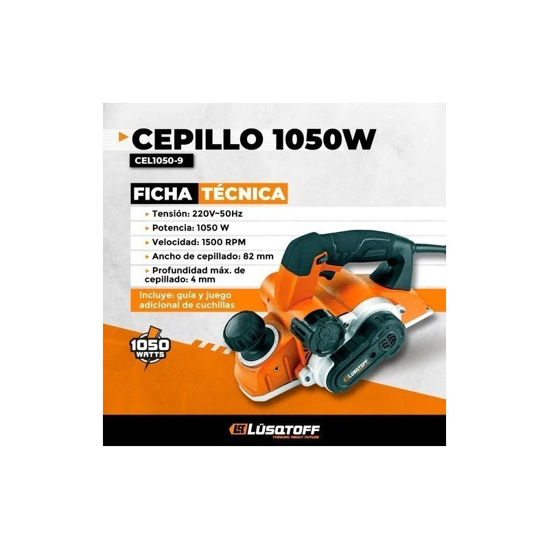 Cepillo Eléctrico De Mano 1050w Carpintero Garlopa Lusqtoff