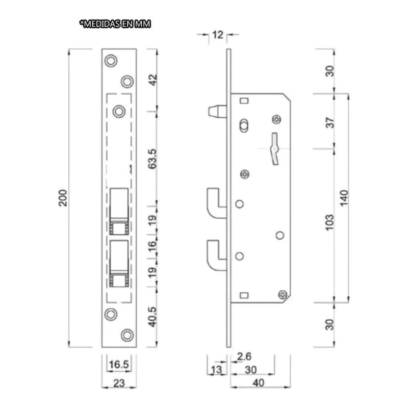 CERRADURA CAJA ANGOSTA PUERTA CORREDIZA DE SEGURIDAD DOBLE PALETA 965