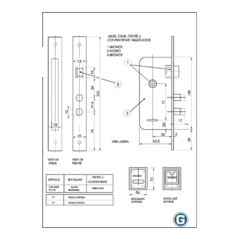 TERMINACIÓN: Frente y caja niquelada