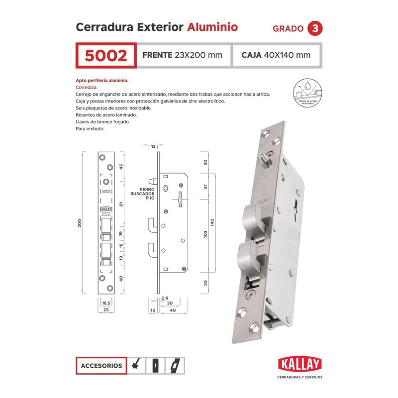 Si te preocupa la seguridad de tu inmueble, este producto es para vos. Mantené tus puertas aseguradas con la cerradura Kallay 5002 y salí sin preocupaciones.