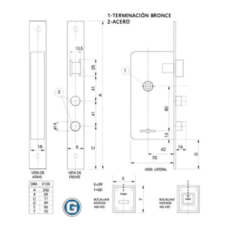 - Espesor mínimo de la puerta recomendado: 1 mm