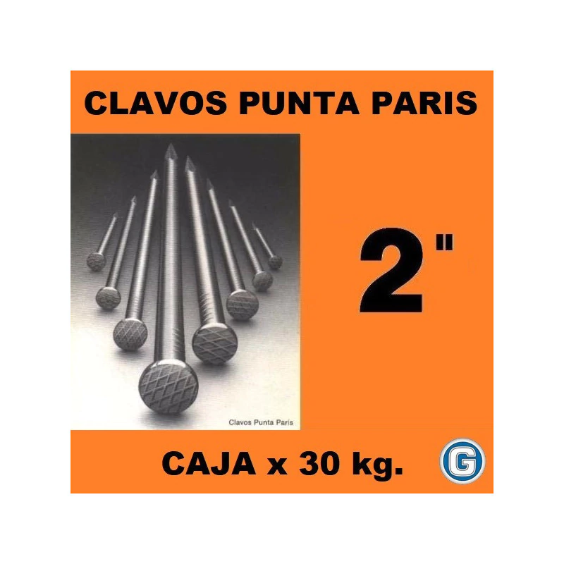 CLAVOS PUNTA PARIS DE 2" DE LARGO (50,80 mm.) y 2,87 mm. DE DIÁMETRO MARCA ACINDAR EN CAJA DE 30 kg.