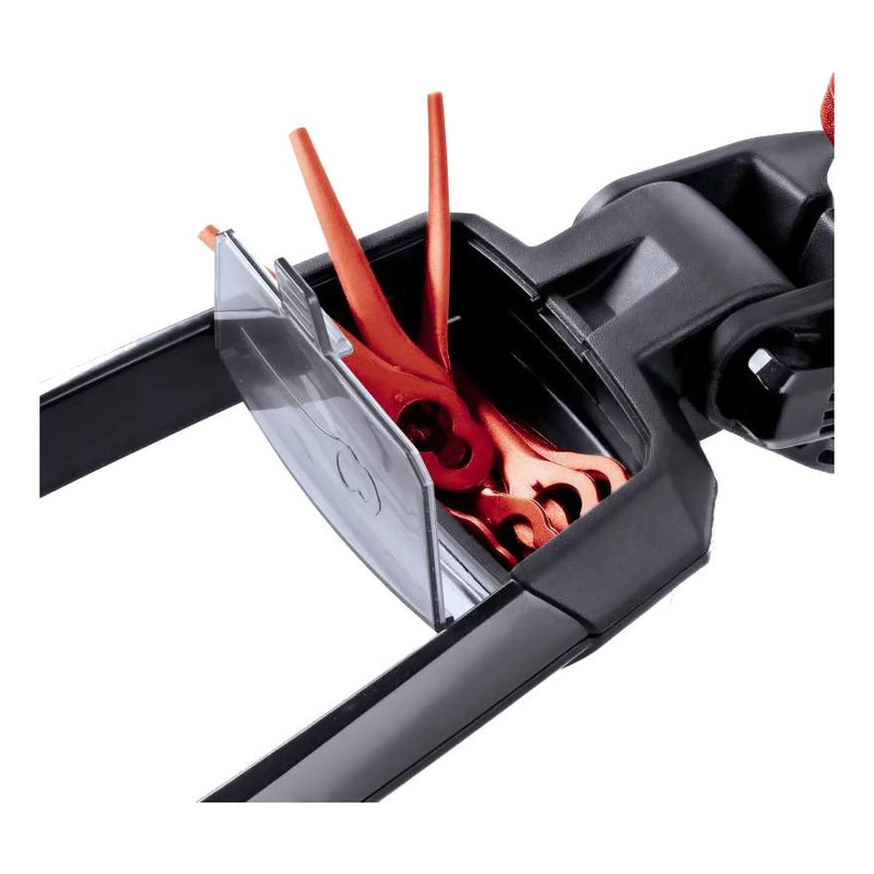 La desmalezadora y bordeadora de césped eléctrica inalámbrica Einhell GE-CT 18 Li Solo en color rojo es la herramienta perfecta para mantener tu jardín en óptimas condiciones. Gracias a su alimentación por batería, podrás trabajar sin cables y con total libertad de movimiento. Su motor de 8500 rpm y diámetro de corte de 24 cm te permitirán realizar trabajos de desmalezado y bordeado de forma rápida y eficiente. Además, su peso ligero de 2.2 kg y mango regulable hacen que sea fácil de manejar y cómoda de usar durante largos períodos de tiempo. La regulación de manillar y el cabezal ajustable te permiten adaptar la herramienta a tus necesidades y preferencias, mientras que el protector de seguridad y la carcasa de protección garantizan un uso seguro en todo momento. Incluye 20 cuchillas de plástico para que puedas empezar a trabajar en tu jardín de inmediato. No esperes más y disfruta de un jardín impecable con la desmalezadora y bordeadora de césped eléctrica inalámbrica Einhell GE-CT 18 Li Solo.