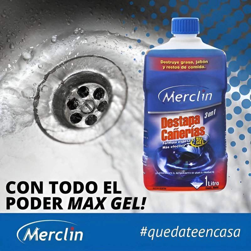- Título manual: MERCLIN Destapa Cañerias Gel 1 Litro 3 En 1