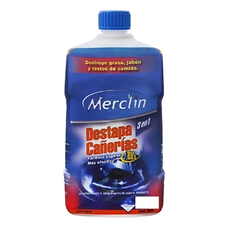 Destapa Cañerias Max Gel 500ml Merclin 3 en 1 Caños Liquido