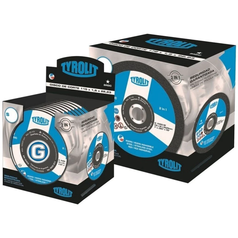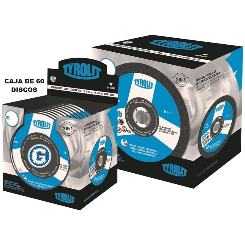 PACK X 60 UNIDADES DE DISCO DE CORTE TYROLIT LINEA BASIC PARA MÁQUINAS PORTÁTILES ANGULARES (AMOLADORA) DE Ø 115 x 1,60 mm