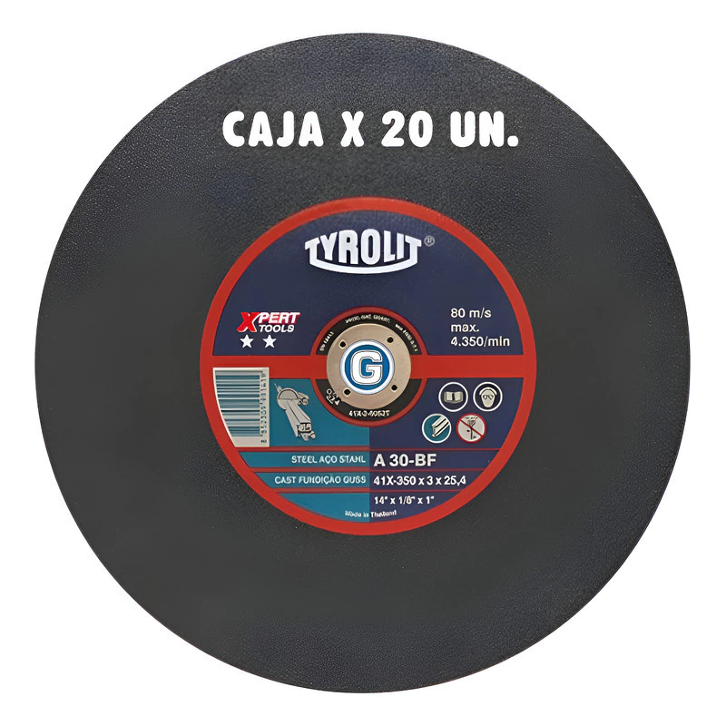 CAJA X 20 UN. DE DISCO DE CORTE TYROLIT LINEA XPERT TOOLS PARA MÁQUINAS SENSITIVAS DE Ø 350 x 3 mm