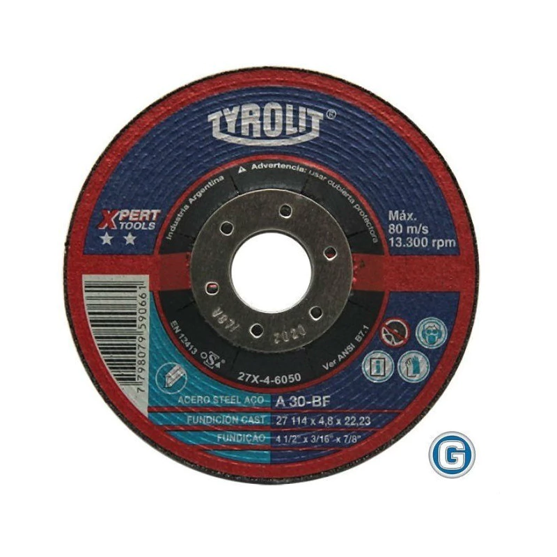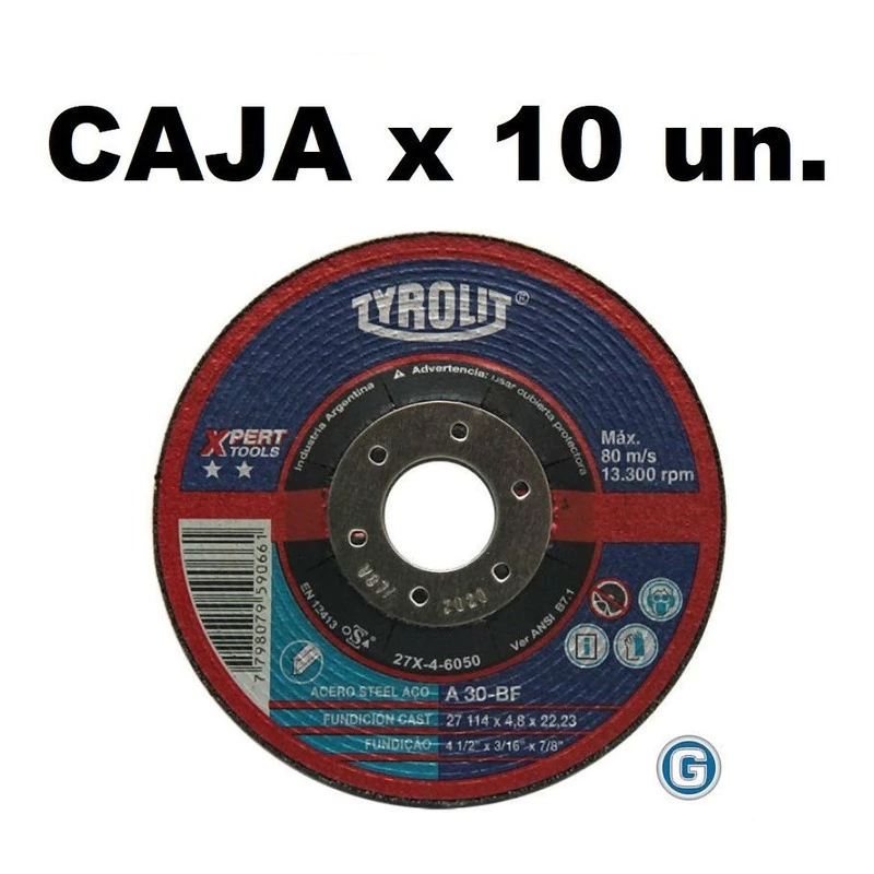 CAJA X 10 UN. DE DISCOS DE DESBASTE TYROLIT LINEA XPERT TOOLS PARA MÁQUINAS PORTÁTILES ANGULARES (AMOLADORA) DE Ø 115 x 4,75 mm