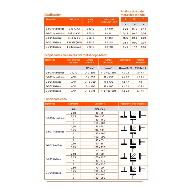 La escoria es de fácil remoción fría. Apto para soldar aceros tipo SAE 1045 o similares.