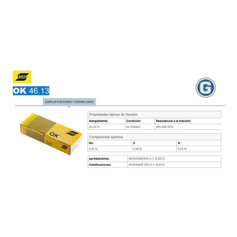 PACK DE 5 KG. DE ELECTRODO ESAB OK 46.13 6013 DE Ø 2,50 MM. PUNTA AZUL