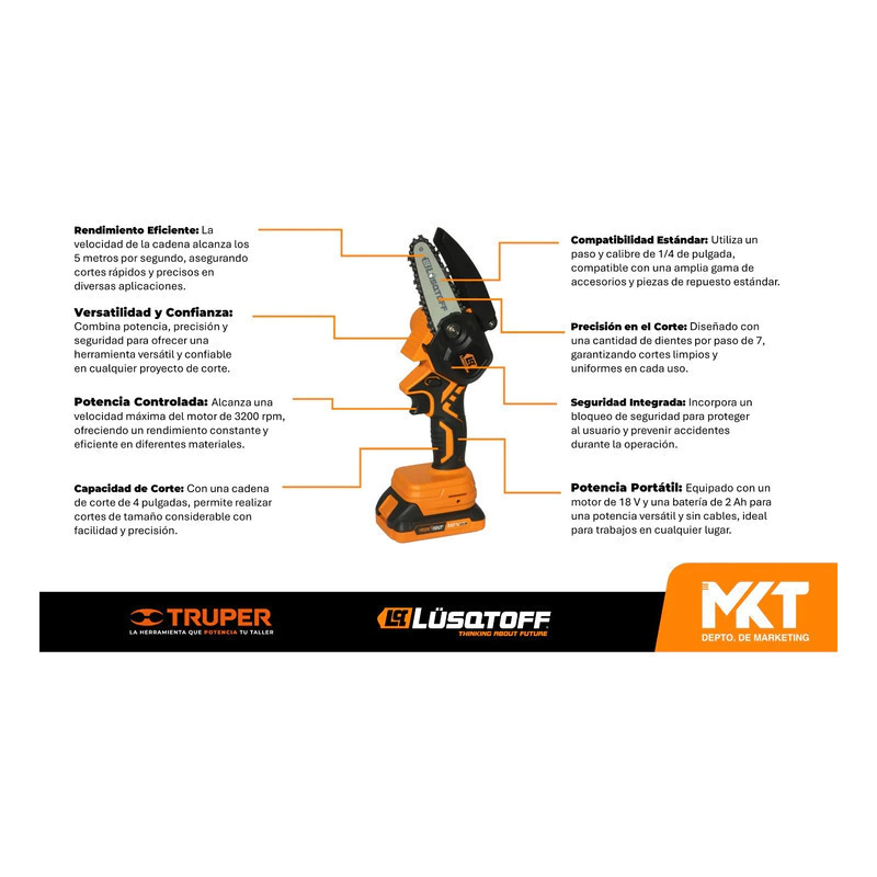 Electrosierra Inalámbrica Lusqtoff Mml40-9bk 2 Baterías 18V + maletín