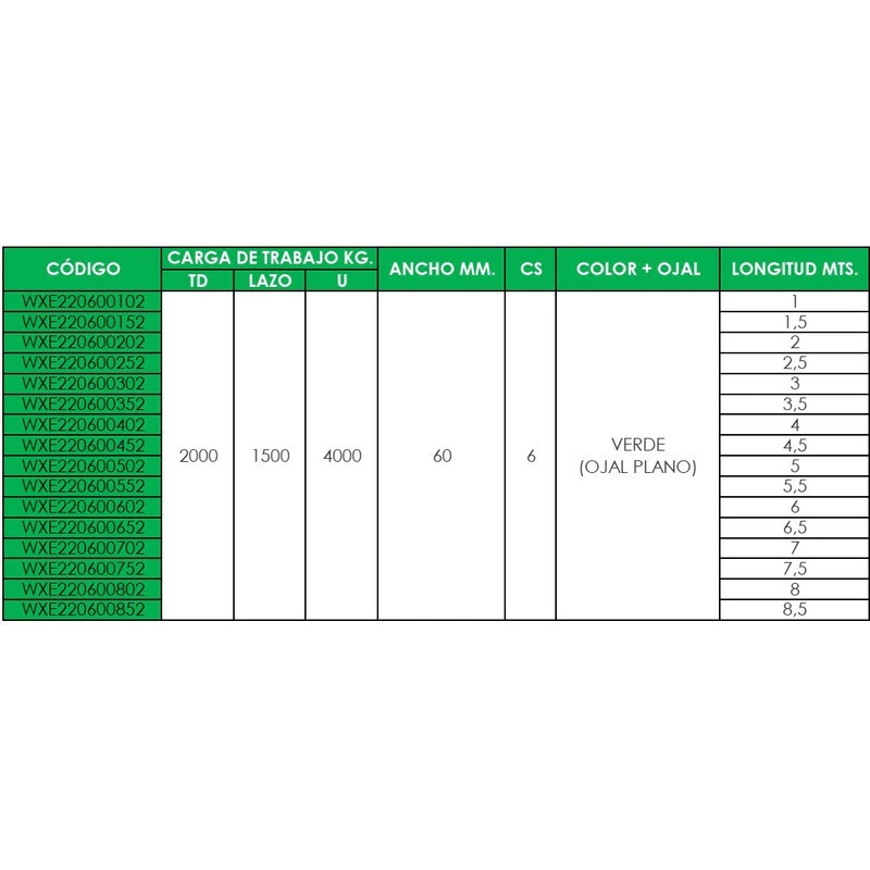 ESLINGA DE IZAJE STD PLANA OJAL/OJAL DELTA PLUS (ESLINGAR) VERDE DE 3 MT DE LARGO