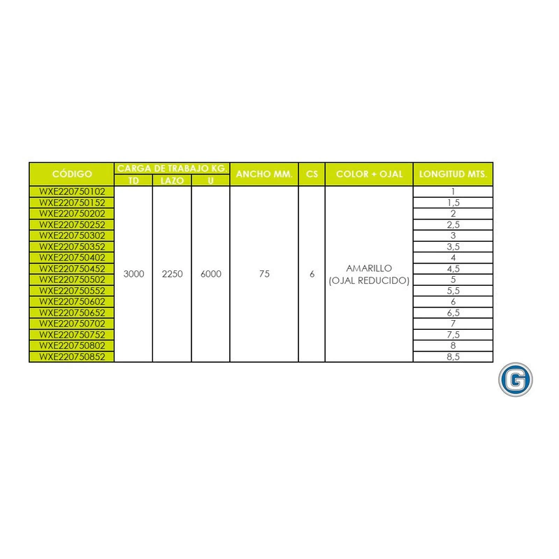 ESLINGA DE IZAJE STD PLANA OJAL/OJAL DELTA PLUS (ESLINGAR) AMARILLA DE 4 MT DE LARGO