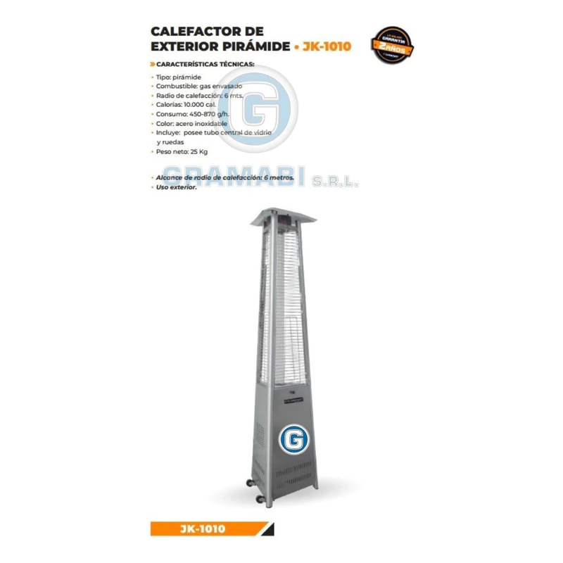 CALEFACTOR EXTERIOR TIPO PIRÁMIDE LUSQTOFF ACERO INOXIDABLE A GAS (GARRAFA NO INCLUIDA) MODELO JK-1010