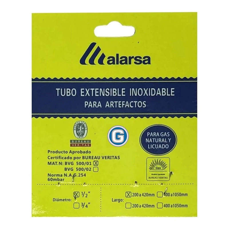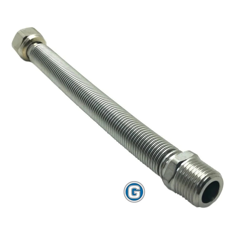 TUBO EXTENSIBLE FLEXIBLE DE ACERO INOXIDABLE PARA ARTEFACTOS A GAS NATURAL O LICUADO.