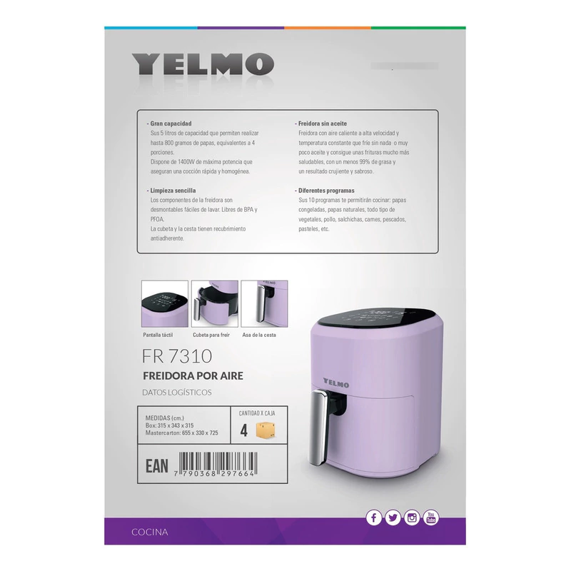 Freidora De Aire Yelmo Fr-7310 5lts Pantalla Táctil 1400w Color Lila