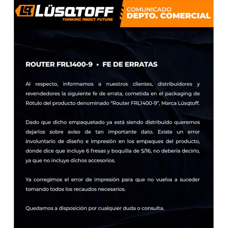 Fresadora De Mano Lusqtoff 1400w 28000rpm Router 3 Boquillas