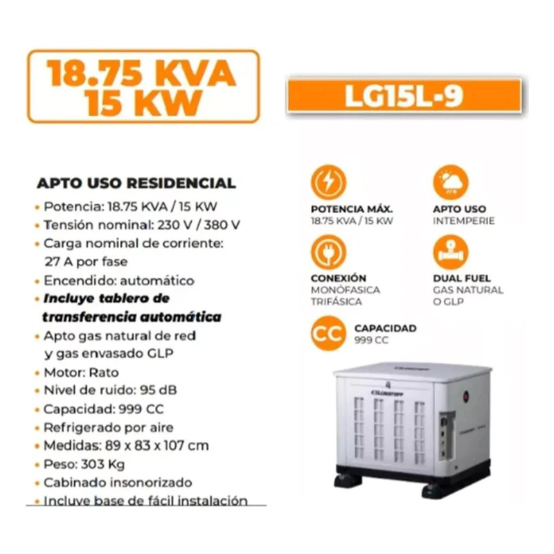 Grupo Electrógeno A Gas Generador 15kw 220v Lusqtoff Lg15l-9