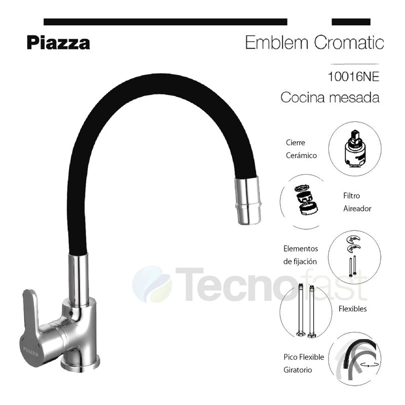 Grifería Piazza Cocina Monocomando Flexible Negro Lavatorio