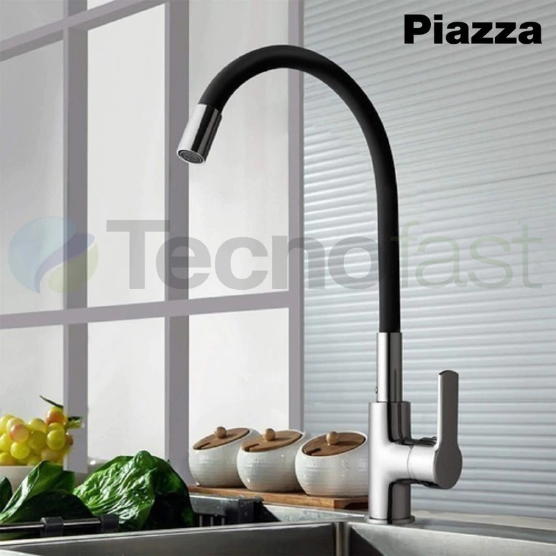 Grifería Piazza Cocina Monocomando Flexible Negro Lavatorio