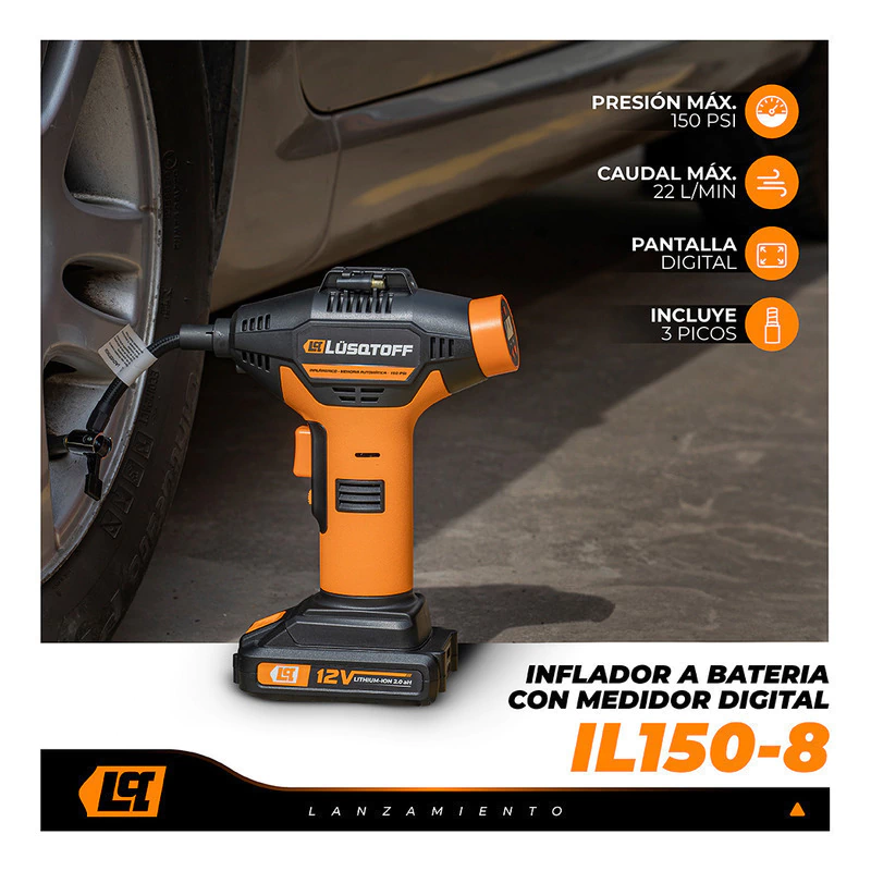 Inflador Inalámbrico Medidor Digital Batería 12v Lusqtoff