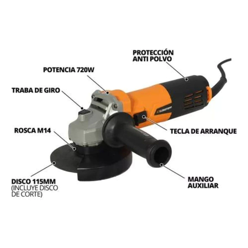 Kit Amoladora 115mm 720w Taladro 600w 13mm Lusqtoff Maletín