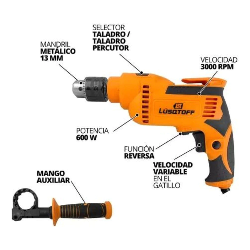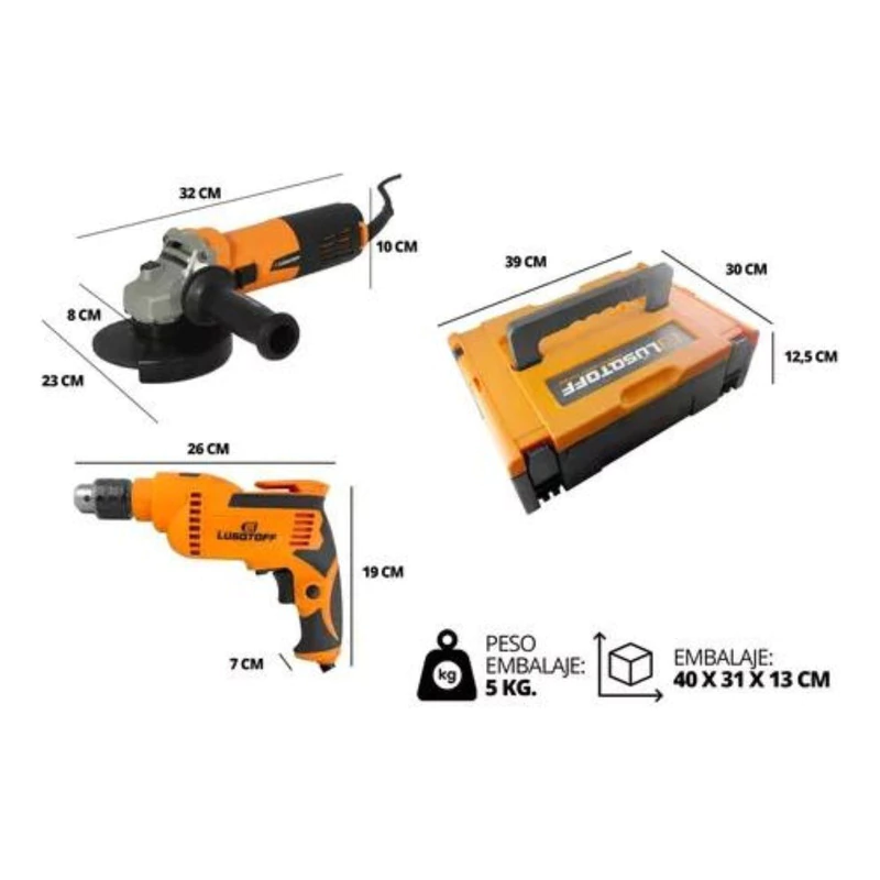 Kit Amoladora 115mm 720w Taladro 600w 13mm Lusqtoff Maletín
