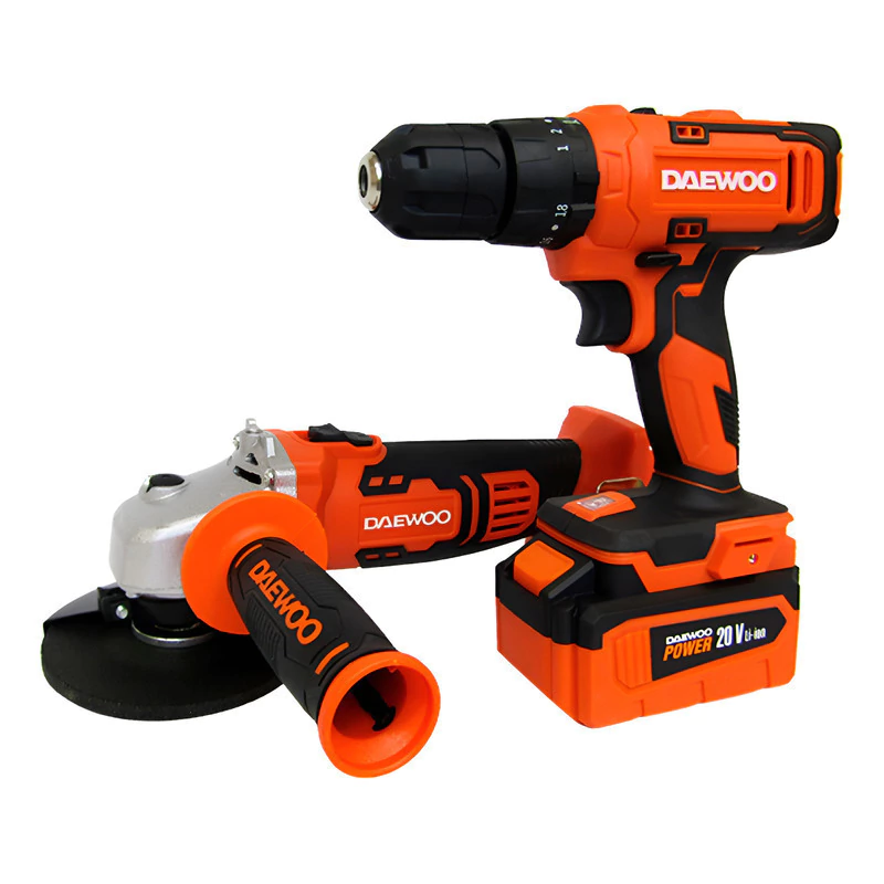 Kit Amoladora Y Taladro Litio Daewoo Daag2000li + Dacd2000li Color Naranja