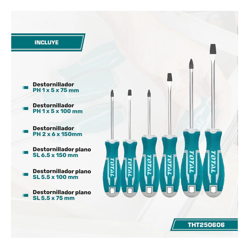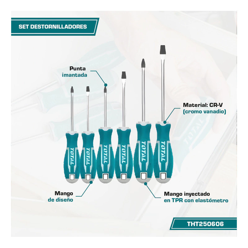 Kit Set Juego 6 Destornilladores Total Plano Phillips Magnet