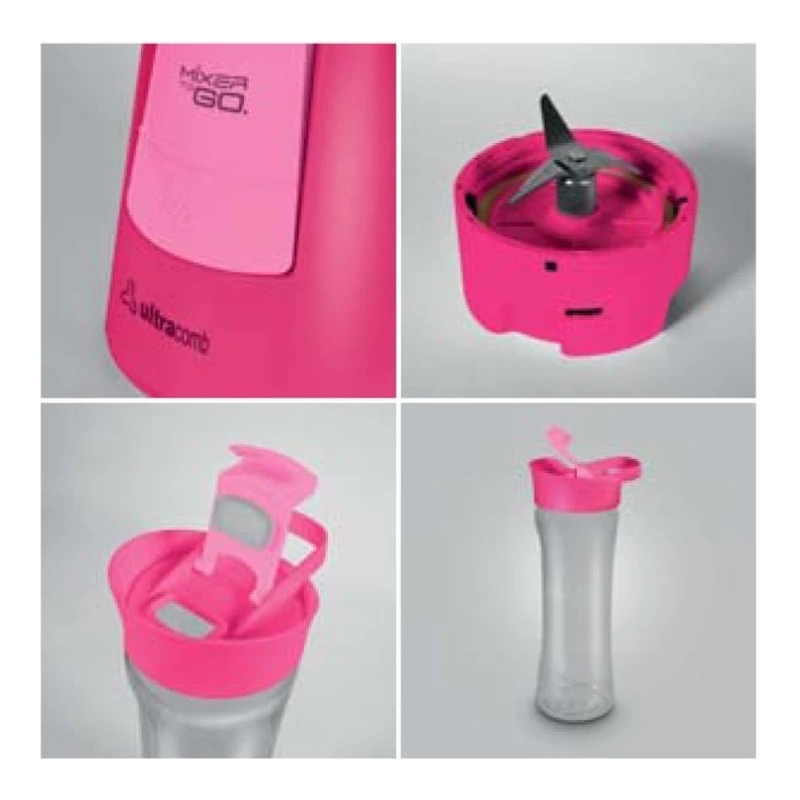 Licuadora Portátil Vaso Ultracomb Mixer Rosa 600mL Deportiva