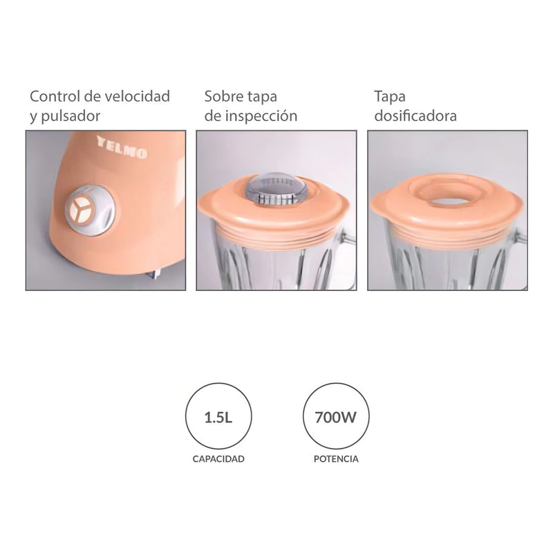 Licuadora Yelmo Lc-1010n 1.5 L Jarra Vidrio 220v 700w Rosa