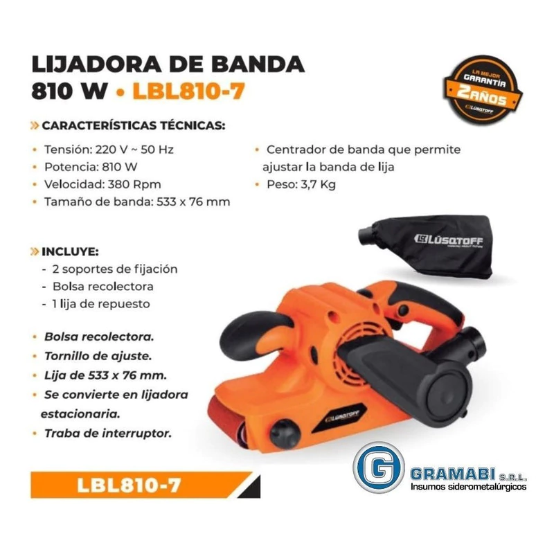 Lijadora de Banda Eléctrica Lusqtoff de Mano 810 Watts LBL810-7 con Accesorios