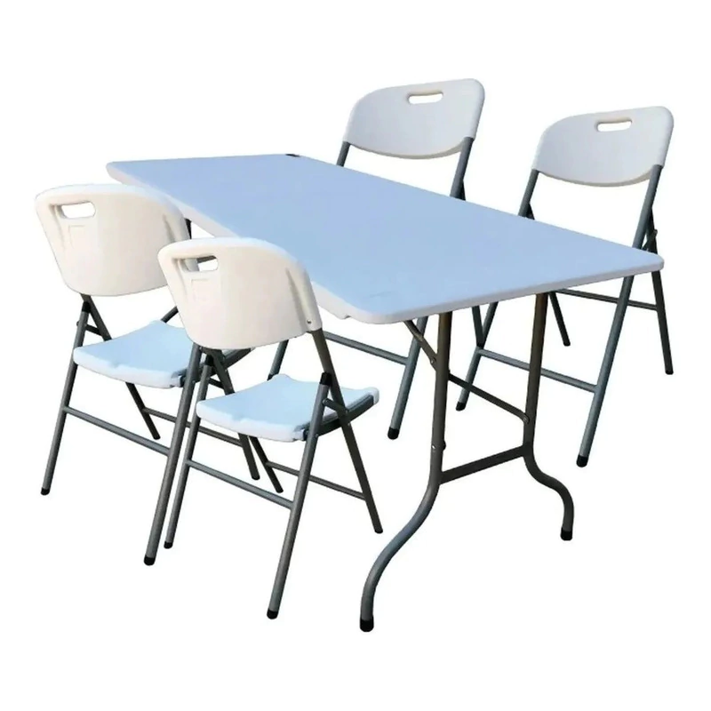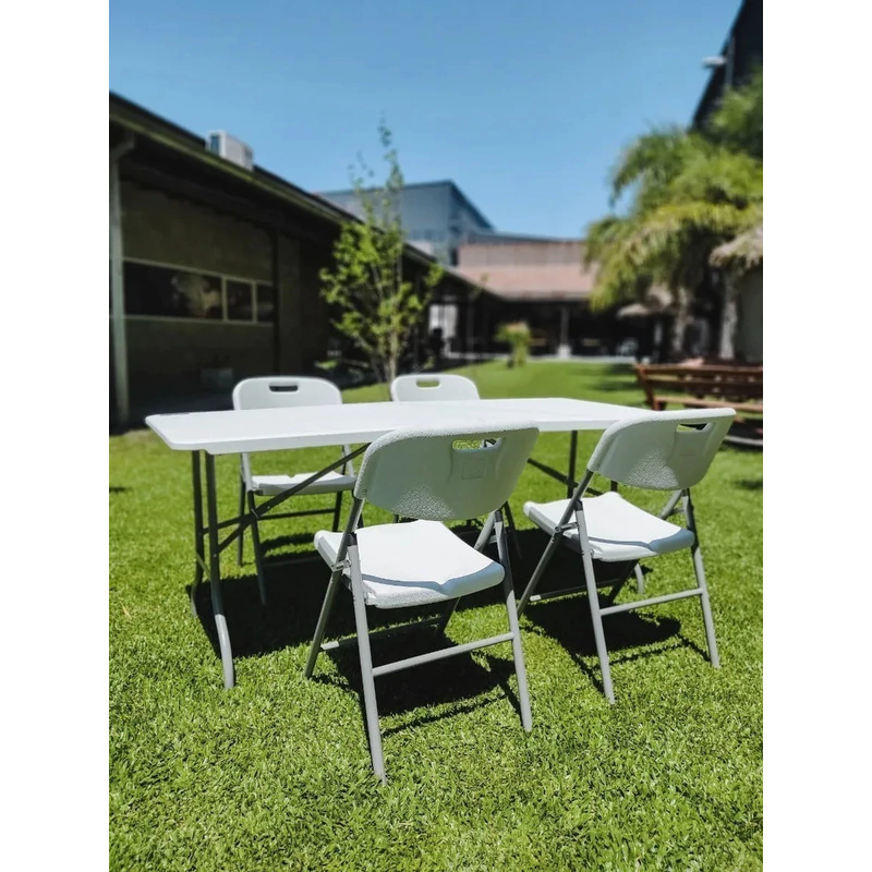 Mesa + 4 Sillas Para Jardín Plegables Lüsqtoff 1,80cm Blanco